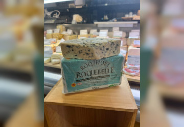 Entdecken Sie den Roquefort Roquebelle AOP, einen exquisiten halbfesten Schnittkäse aus der Region M...
