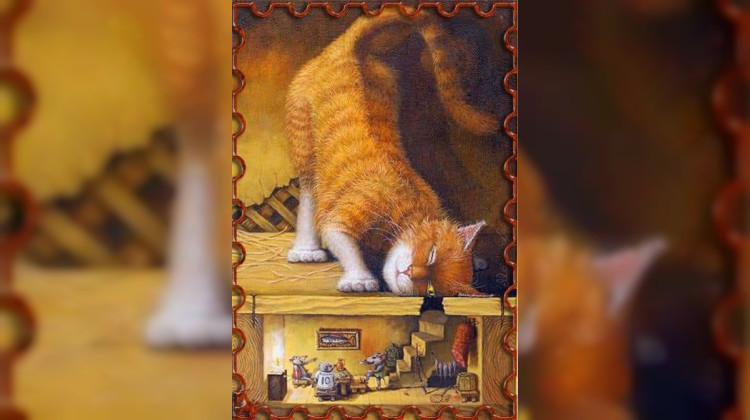 Wahrscheinlich wäre das noch viele Jahre so gegangen, doch eines Tages starb der alte Bauer und sein Sohn übernahm den Hof. Er hatte eine junge schöne Frau geheiratet und die war sehr reinlich. Sie fegte und putzte, wischte und polierte. Kein Fleck entging ihr, sie fand jede Spinnenwebe und entfernte sie.  Die beiden jungen Leute wussten nichts von einem Vertrag. Spinne und Fliege aber erinnerten sich sehr genau und baten die Katze um Hilfe: „Bitte bringe uns zum Dachboden, wo das Loch ist. Wir müssen den Vertrag holen.“ Die Katze half gern. Doch wie staunten die drei, als sie sahen, dass in dem Loch nur noch ein paar Fetzchen lagen. Der Vertrag war verschwunden. Genau genommen war der Vertrag nicht verschwunden, sondern eine Maus war gekommen und hatte den Vertrag zum Teil verspeist, zum Teil im Nest verbaut. Seit diesem Tage setzen die Hausfrauen Spinnen und Fliegen einfach vor die Tür und sagen: „Die haben in der Küche nichts verloren.“ Die Katze aber jagt den Mäusen nach, in der Hoffnung, in einem Mäusebauch den verloren gegangenen Vertrag wiederzufinden. Wie wir wissen, sucht die Katze bis heute vergeblich.